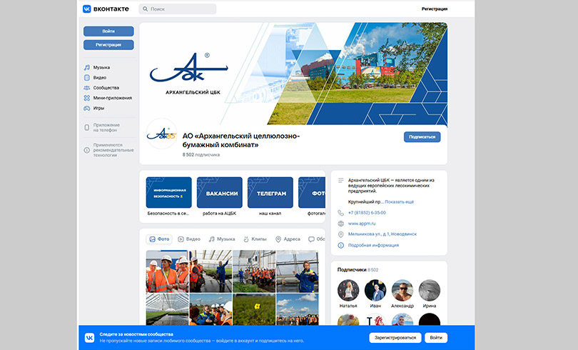 Отметим, что второе место в этом конкурсе — в номинации «Лучшее качество и разнообразие предлагаемого контента» — занял корпоративный аккаунт Архангельского ЦБК в соцсети «ВКонтакте». В сообществе уже 8,5 тысячи подписчиков.