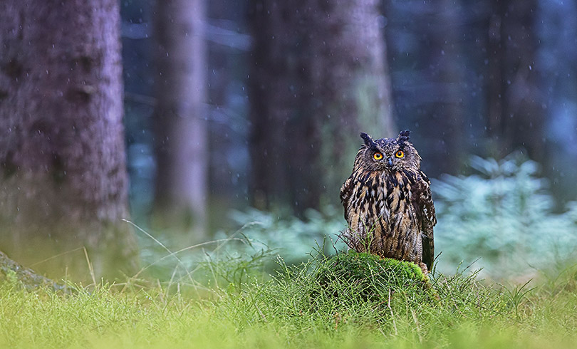 Совы любят сидеть под проливным дождём. В это время они ухаживают за перьями.