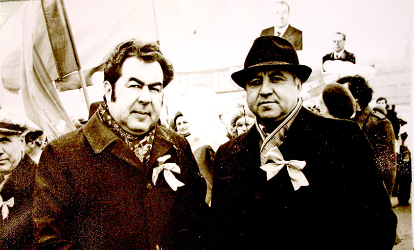 Главный инженер АЦБК Пётр Ершов и генеральный директор комбината Владимир Ишханов на первомайской демонстрации 1980 года. Фото из архива редакции